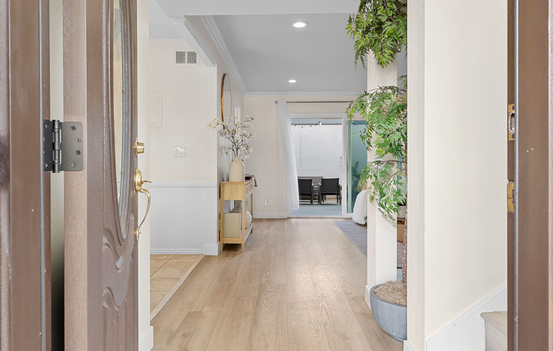 Welcome to your perfect home in the tranquil Sunshine Village community of Stanton! This delightful two-story townhouse offers modern amenities and tasteful upgrades, ensuring a comfortable lifestyle for you and your family. Boasting 4 bedrooms and 2 bathrooms, this home features upgraded vinyl flooring, a new central A/C, and smooth ceilings. The kitchen is a culinary haven with elegant quartz countertops, a brand-new dishwasher, and a gas range, perfect for all your cooking needs. The thoughtful layout includes a convenient downstairs master bedroom, providing privacy and ease of access, while the three remaining bedrooms are comfortably situated upstairs, ideal for family members or guests. Enjoy the added luxury of softened water throughout the home. Step outside to a private back patio, ideal for relaxing or entertaining. The property includes a two-car garage and an outdoor laundry room off the patio, ensuring both convenience and functionality. Living in Sunshine Village means access to fabulous community features, including a pool, tennis court, clubhouse, and lush greenbelt areas. You're just 12 minutes away from Little Saigon, offering excellent dining and shopping options, and close to freeways 22, 91, and 5 for easy commuting. Embrace the opportunity to live in this beautifully upgraded townhouse, perfectly designed for modern living!